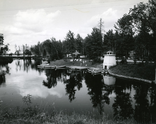 This is is a photograph of several boats at the dock of Gull Harbour. Gull Harbour is located in Hecla/Grindstone Provincial Park. One of the more famous landmarks in this park is the lighthouse at Gull Harbour. Can you see the lighthouse in this photograph? The lighthouse shines a light on the water to help boats see where they are going at night.
