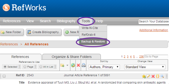 1. Open RefWorks AND hover over VIEW >> and choose ALL REFERENCES
